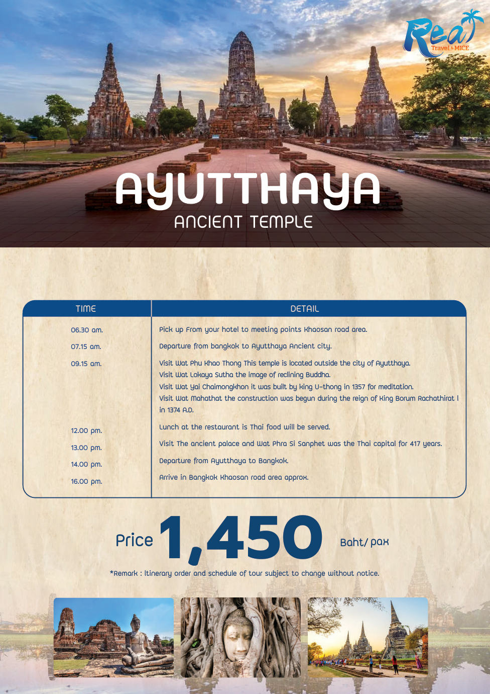 07:15 am – Departure from bangkok to Ayutthaya Ancient city.