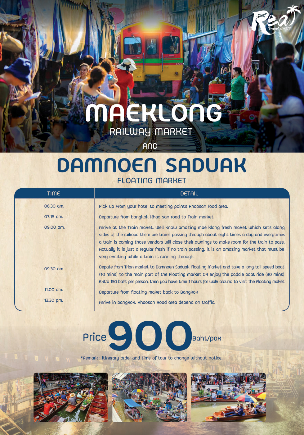 07:15 am – Departure from Bangkok Khaosan Road to train market